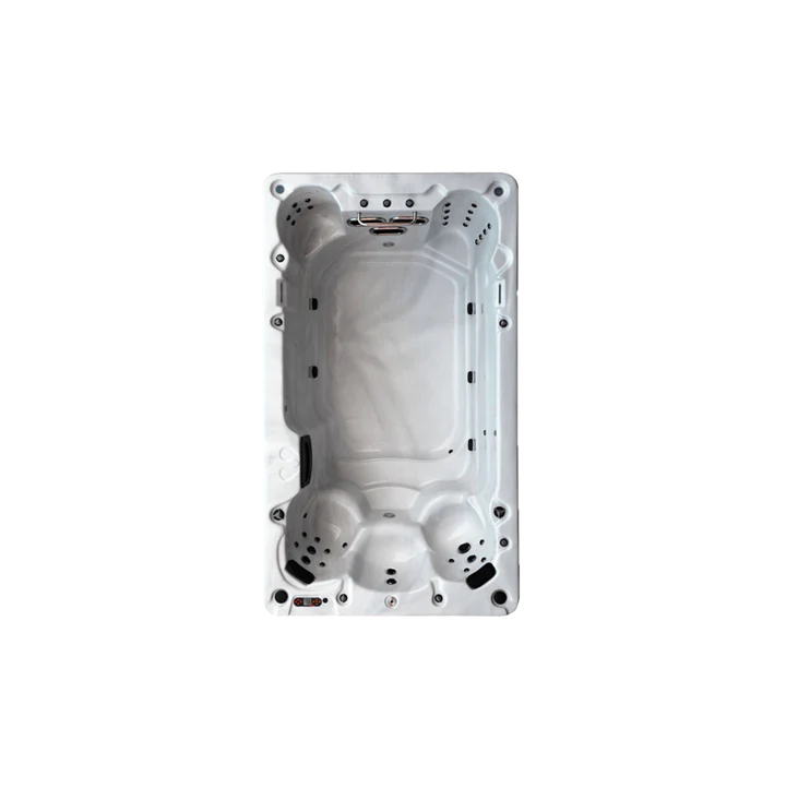 The 13ft. St. Lawrence Swim Spa is the perfect all-around solution for all your swimming and relaxation needs! It features various seating styles for 5, including captain’s chairs with headrests, a coach’s chair with interchangeable hydrotherapy jets and an exclusive stand-up chair for a deep-tissue leg massage. The 13ft. St. Lawrence is packed with 39 adjustable and interchangeable hydrotherapy jets, 3 wide river jets powered by 16.4-amp, 5 horsepower pumps which create strong yet smooth currents so that you can swim, jog, walk or exercise as the ongoing stream keeps your balance and enables effective hydro training. Our spas use Glacier filtration and a built-in ozone generator to keep your water crystal clear without hassle- letting you focus on enjoying your time in the spa, rather than caring for it! The 13ft. St. Lawrence offers unbeatable value through its combination of swim space, seating capacity, quality, features and design. The spa's LED lighting, built-in Bluetooth audio, aromatherapy system, and cascading waterfalls, create a full-sensory experience, making it the perfect complement to your backyard!