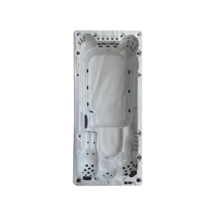 The 16ft. St. Lawrence Swim Spa is the perfect all-around solution for all your swimming and relaxation needs. It features various seating styles, including a Captain’s Chair with headrest, Coach’s Chair, barrier-free bench, and an exclusive stand-up chair for a deep-tissue leg massage. The 16ft. St. Lawrence is packed with 72 adjustable and interchangeable hydrotherapy jets, along with 2 wide river jets powered by four 16.4-amp, 5 horsepower pumps which create strong yet smooth currents and 3 high pressure swim jets so that you can swim, jog, walk or exercise as the ongoing stream keeps your balance and enables effective hydro training. Our spas use Glacier filtration and a built-in ozone generator to keep your water crystal clear without hassle - letting you focus on enjoying your time in the spa, rather than caring for it! The spa's LED lighting, built-in Bluetooth audio, aromatherapy system, and cascading waterfalls, create a full-sensory experience, making it the perfect complement to your backyard!